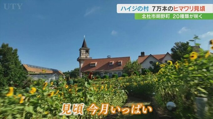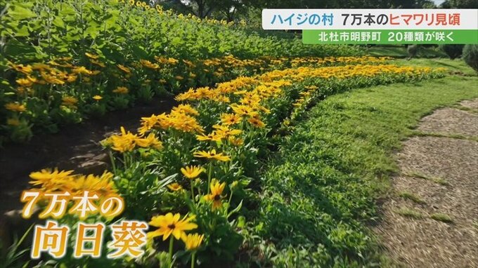北杜市のハイジの村で7万本のヒマワリが見頃を迎えています。