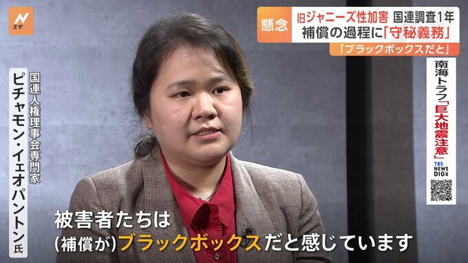 旧ジャニーズ事務所の性加害問題について、国連人権理事会の専門家が来日し、調査してから1年が経ちました。専門家の一人がJNNの単独インタビューに応じ、被害者への補償の過程が「ブラックボックス」になっている…