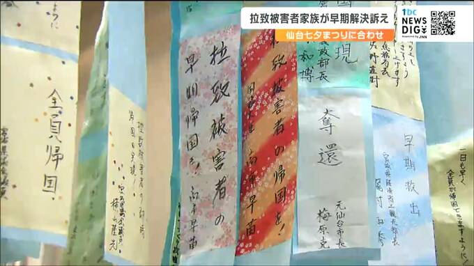 北朝鮮による拉致被害者の家族を支援する会が8日、仙台七夕まつりの会場で署名活動を行い問題の早期解決を訴えました。