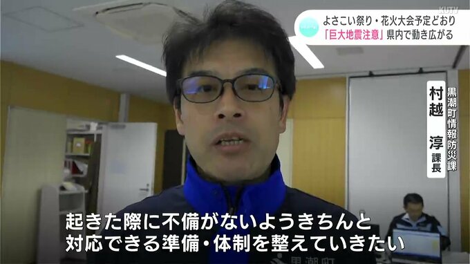 南海トラフ地震臨時情報の「巨大地震注意」が発表されたことを受け、高知県内でも動きが広がっています。高知県黒潮町では「巨大地震注意」の発表を受け、8日夜、警戒レベル3の「高齢者等避難」を発表。町内には集…