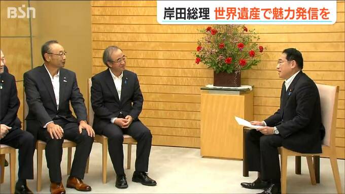新潟県の花角英世知事と佐渡市の渡辺竜五市長らが9日に総理官邸を訪れ、岸田総理と面会し、7月27日に「世界文化遺産」への登録が決まった『佐渡島(さど)の金山』について、実現までの政府の取り組みに感謝の意を伝えました。