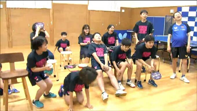 張本選手の両親が運営する仙台市宮城野区の卓球場。後輩たちがパリへ声援を送ります。