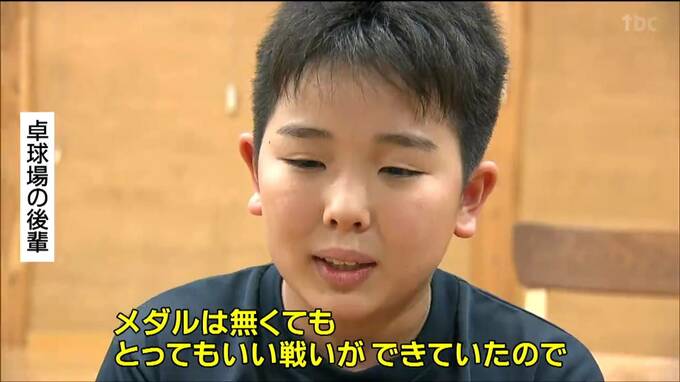 卓球場の後輩:「メダルがなくてもとてもいい戦いができていたので、とてもすごかった」