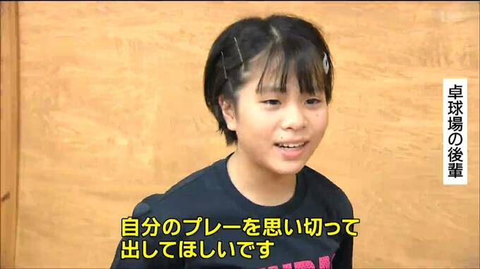 卓球場の後輩:「自分のプレーを思い切って出してほしい」