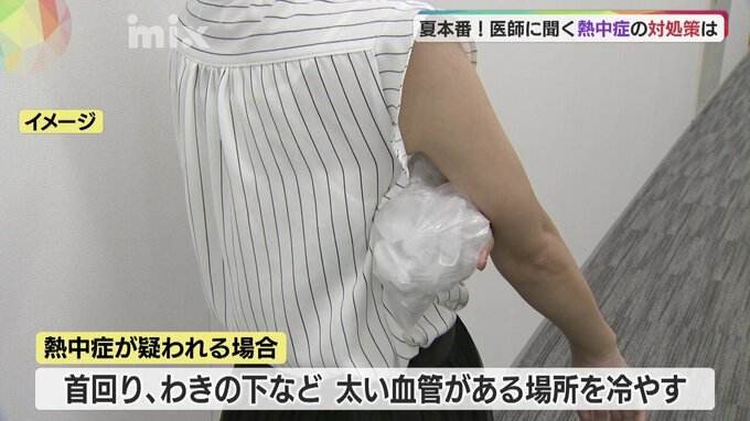 少しでも「いつもと違う」と感じたら、涼しいところで休んだり、水分や塩分を補給したりする必要があります。熱中症が疑われる場合は首回りやわきの下など、太い血管がある場所を冷やすのも効果的です。