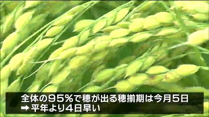 全体の95%で穂が出る穂揃期は今月5日で平年より4日早くなりました。