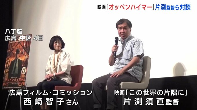 これを記念して、広島を舞台にしたアニメーション映画「この世界の片隅に」の 片渕須直 監督と、広島フィルム・コミッションの 西崎智子 さんが対談。2人は「アメリカ側の視点で描いた意義は大きい」と話し、「原爆を広く語れる土壌を作った作品」などと評価しました。