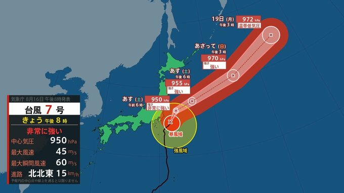台風7号進路は?16日夜に非常に強い勢力で関東・東北地方接近か