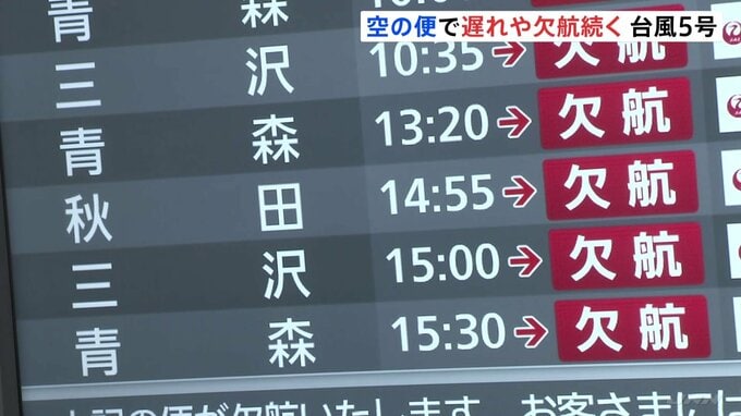 台風5号の影響で、きょうも空の便に遅れや欠航が出ています。日本航空では、岩手県の花巻空港発着便は全便欠航が決定、青森・三沢・秋田・仙台・山形・新潟などを発着する多くの運航便で欠航が見込まれています。…
