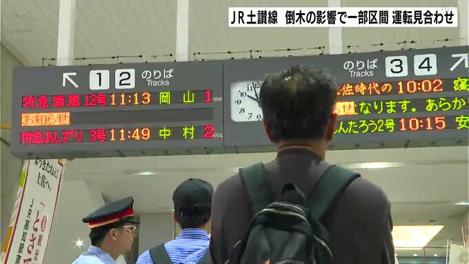 12日朝早く、JR土讃線で列車が倒木と接触し、この影響で一部の区間で、運転見合わせなどが発生しています。JR四国によりますと、12日午前6時17分ごろJR土讃線・香川県の塩入駅と黒川駅の間で、高知発・高松行きの…