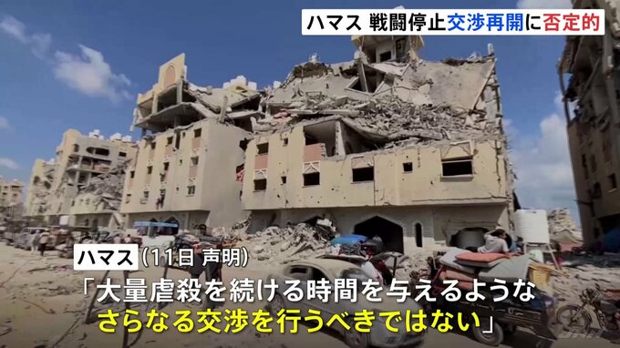 アメリカなどが提案するイスラエルとイスラム組織ハマスの戦闘停止に向けた交渉再開について、ハマスは否定的な声明を出し、交渉には参加しない可能性を示唆しました。ガザ地区へのイスラエル軍の攻撃が続くなか、…
