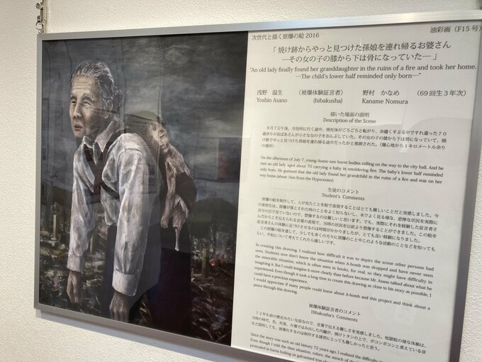 「(わたしが)子どものころ、被爆者から直接、体験を聞いていたが、年数がたって今、そういうのもなかなかないので、うちの子どもにはこういう怖いことがあったんだよと絵を通して伝えてあげたらいいかなと思って来ました」