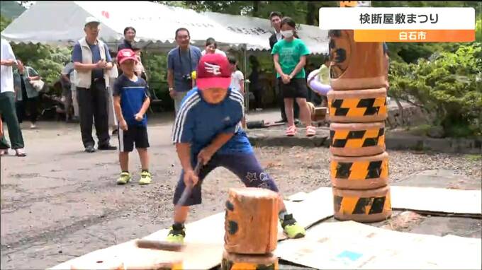 水辺でスイカ割りやゲームなどを楽しむ「夏の検断屋敷まつり」が11日、宮城県白石市であり、多くの家族連れなどでにぎわいました。