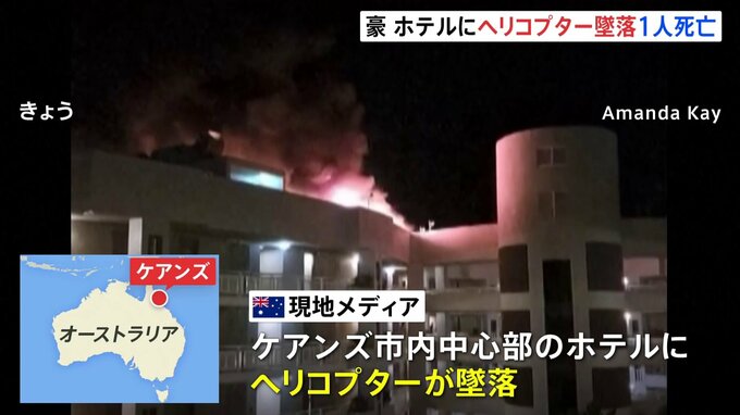 オーストラリア北東部の観光地ケアンズで12日未明、ホテルにヘリコプターが墜落し、これまでに1人が死亡しました。日本人客を含むおよそ400人が避難したということです。現地メディアによりますと、ヘリコプターが…