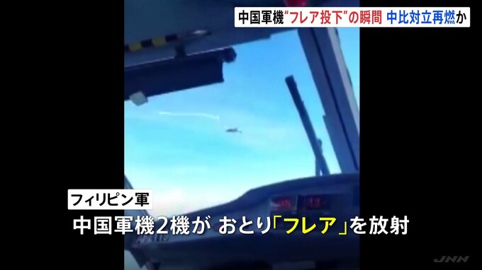 中国軍の航空機が南シナ海の上空で、領有権を争うフィリピン軍機に危険な妨害行為をしたとされる問題で、JNNは、その瞬間を捉えた映像を入手しました。中国軍機から火の玉のようなものが繰り返し放射されています…