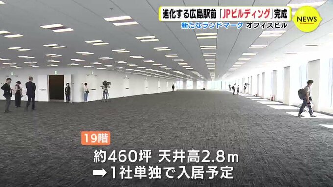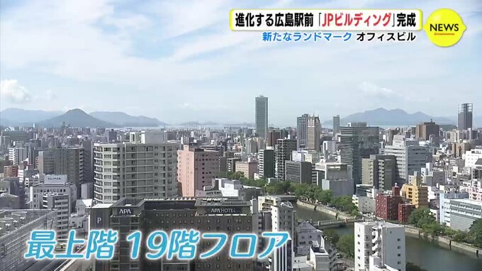 広島JPビルディングは19階建てで、高さおそよ88メートル、延べ床面積はおよそ4万4200平方メートルのオフィスビルです。