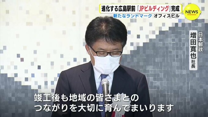 「広島JPビルディングの竣工が、地域のみなさま方にとって共通の明るい話題となり、竣工後も地域のみなさまとのつながりを大切に育んでまいります」