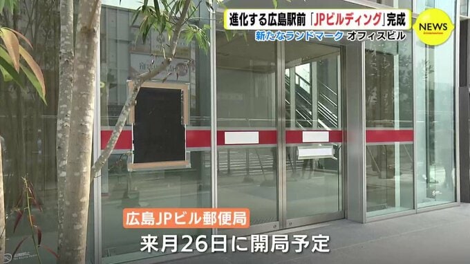 広島駅前の風景がまた大きく変わります。広島東郵便局跡地に日本郵便が建設していた新たなオフィスビル「広島JPビルディング」が完成し、来月1日の開業を前に26日、竣工式が行われました。