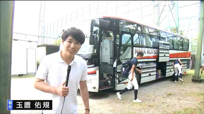「午前10時20分です。聖和学園の選手たちがバスから降りてきました。あすの初戦に向けて今から前日練習に入ります」