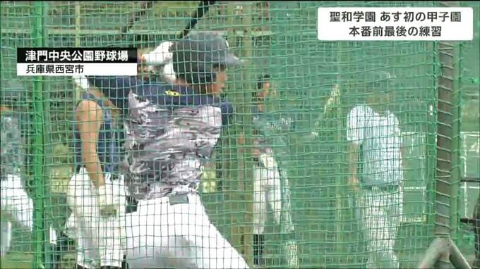春夏通じて初の甲子園出場となる聖和学園。午前11時から兵庫県西宮市の球場で行われた前日練習では、およそ2時間のうち、半分以上を打撃練習にあてました。