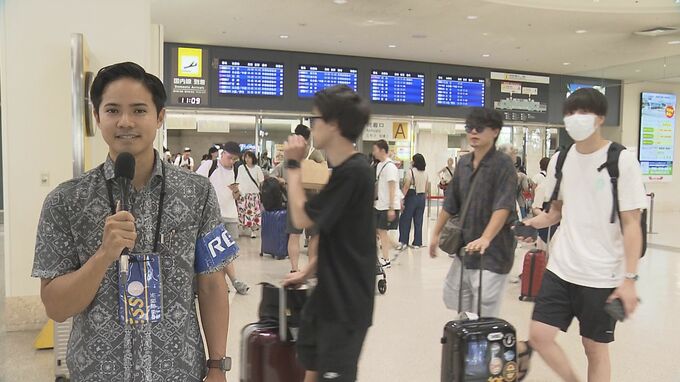 お盆休み前半を迎え、那覇空港では多くの観光客や帰省する人の姿が見られました。