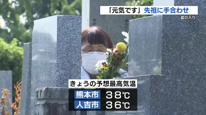 きょう(8月13日)は盆の入りです。熊本市の墓地には多くの人が墓参りに訪れ、先祖に手を合わせました。熊本市の小峯墓地では、午前8時ごろから墓を掃除したり線香をあげたりする家族連れの姿が見られました。熊本…