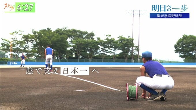 髙嶋陽稀選手は、聖光野球にあこがれ入学してきました。今は、この仕事に誇りをもって日本一を目指しています。