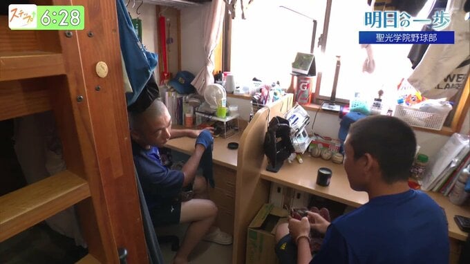 グラウンドでは、凛々しかった選手たちも、ここでは普通の高校生。