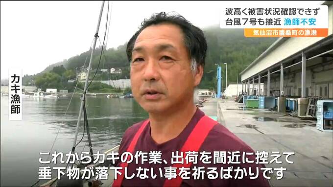 さらに今週末には台風7号が接近する見通しで、カキの出荷シーズンが近づく中漁師は不安を募らせています。