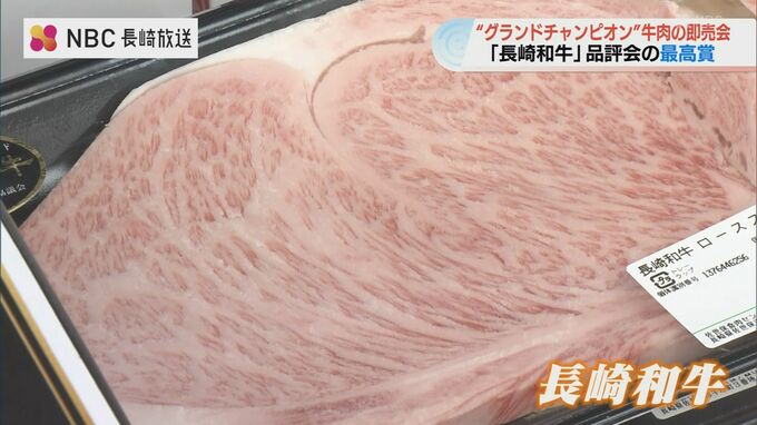 先月開かれた長崎和牛の品評会で最高賞に輝いた牛肉の即売会が13日、長崎市で開かれました。長崎市浜町で開かれた即売会には開始前から20人以上が列を作りました。赤身と脂身のバランスの良さに定評がある長崎和牛…