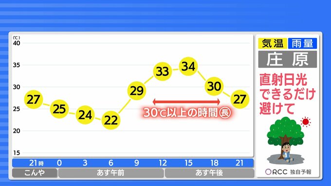 あすも各地で危険な暑さは続きます。南部北部ともに猛暑日が続出する予想で、日中のほとんどの時間が30℃以上になる見込みです。あすも県内は熱中症警戒アラートが発表されています。体調管理にはくれぐれもお気をつけください。