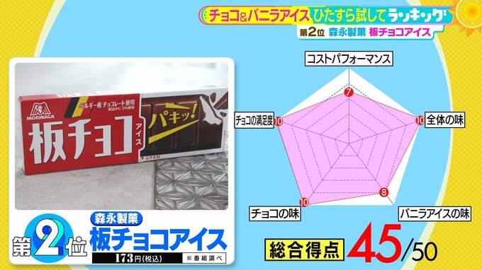 第2位は、森永製菓の『板チョコアイス』(税込173円 ※番組調べ)。