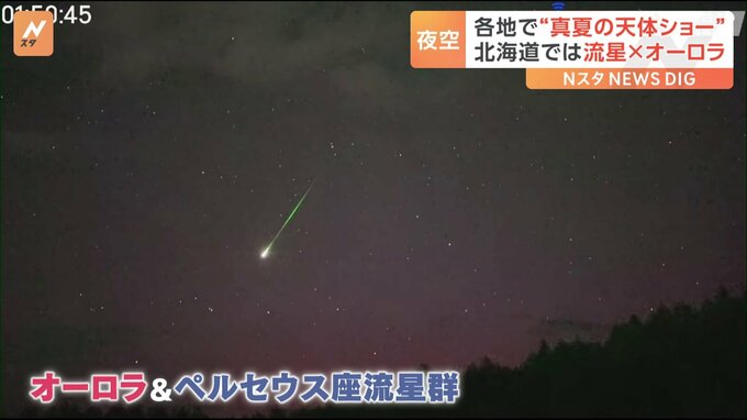 「ペルセウス座流星群」がピークを迎え、各地で真夏の天体ショーが!北海道ではオーロラとの奇跡のコラボレーションも見られました。