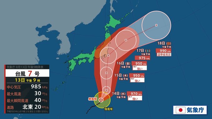 台風7号発達しながら北上 発達ピーク“強い勢力”で関東直撃も