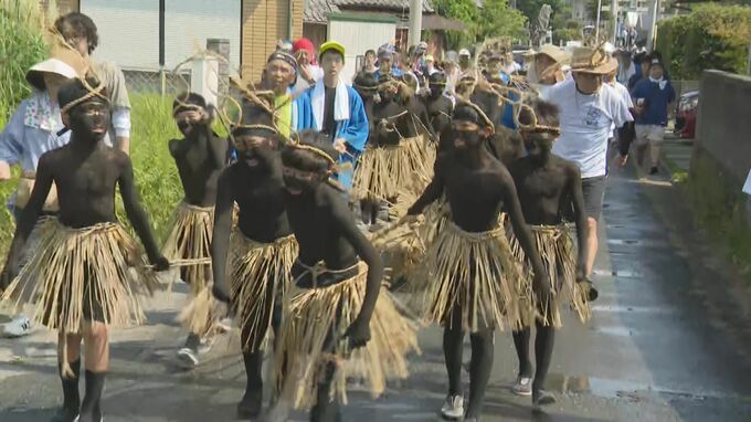 福岡県筑後市では14日、全身にすすを塗って黒鬼に扮した子供たちが町を練り歩くお盆の伝統行事「盆綱曳き(ぼんづなひき)」が行われました。RKB 土橋奏太記者「じりじりとした暑さの中、子供たちがすすで塗られて…