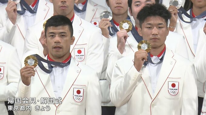 14日は東京都内でメダリストの帰国会見に臨みました。