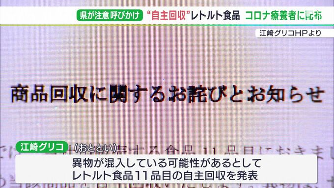 静岡県は、異物混入の可能性があるとして、江崎グリコが自主回収を決めたレトルト食品を、新型コロナの自宅療養者に提供していたと発表しました。江崎グリコは8月24日、異物が混入している可能性があるとして、レ…