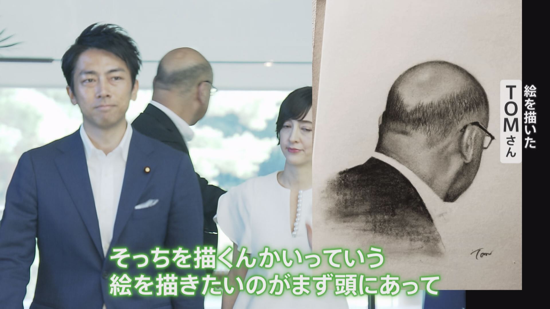 映像をよ~く見ると、いました。小室さんの横を歩く長身の男性。たしかに、そっくりですがなぜこのような絵を描こうと思ったのでしょうか?