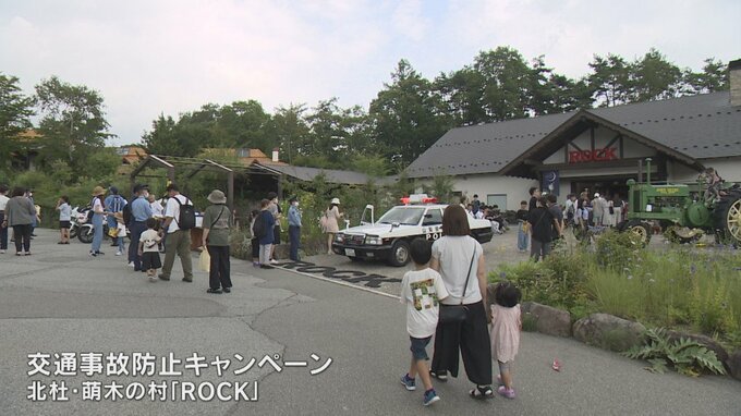 観光地での交通事故の防止を呼びかけるキャンペーンが山梨県北杜市の萌木の村で行われました。