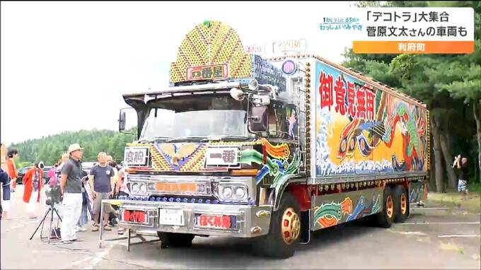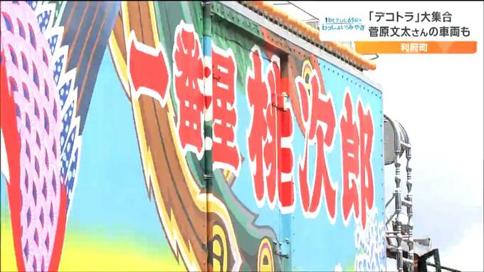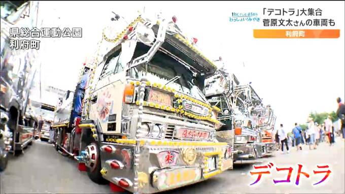 宮城県利府町で14日、「デコトラ」を展示するイベントが開かれ、全国から300台以上が集まりました。菅原文太さん主演の名作映画「トラック野郎」に登場したデコトラも展示され人気を集めていました。