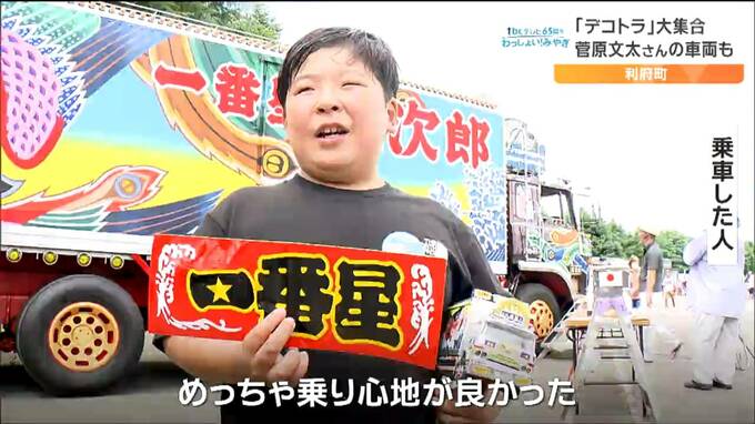 「こちらの車両は、仙台出身の俳優菅原文太さんが映画で使用したデコトラを再現したものです。きょうは乗車体験が出来るということもあり多くの人が集まっています」