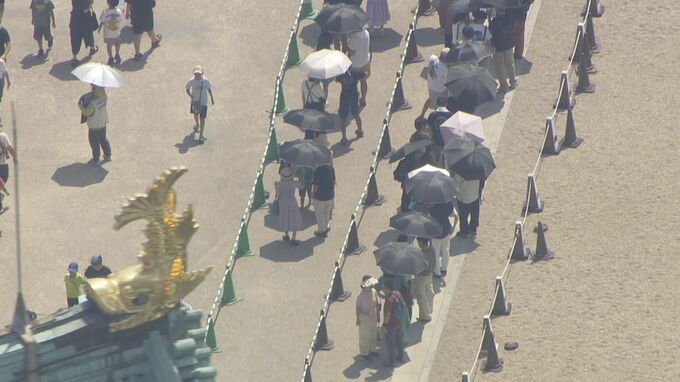 朝から混雑が見られた名古屋城。この猛暑で、皆さん暑さ対策をして観光をしているようです。名古屋城では現在、こんな異変も。