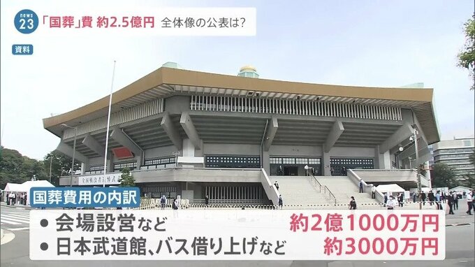 内訳については、会場設営などに約2億1千万円、会場である日本武道館やバスの借り上げなどに約3千万円がかかるということです。