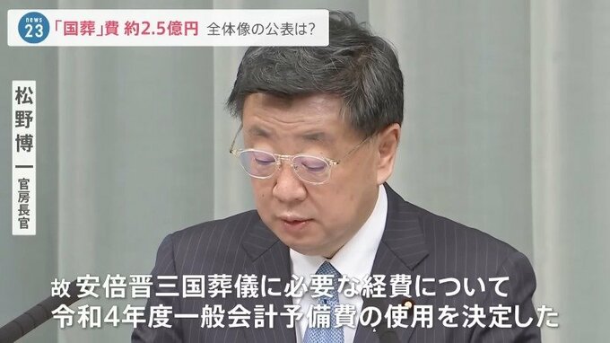「故安倍晋三国葬儀に必要な経費について令和4年度一般会計予備費の使用を決定した」
