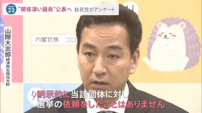 自民党は、9月2日までにアンケートに回答するよう求めていて、「選挙支援」や「寄付」を受けた議員については氏名を公表する方針です。