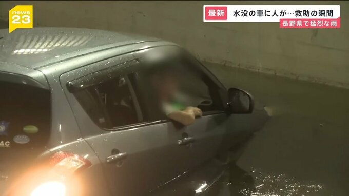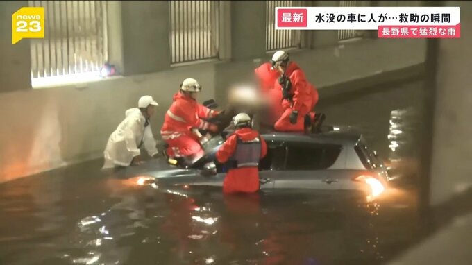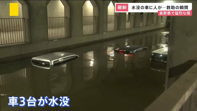 14日、猛烈な雨に見舞われた長野県・松本地域。松本市付近では、午後6時40分までの1時間におよそ100ミリの雨が降ったとみられ、記録的短時間大雨情報が出されました。松本空港近くのアンダーパスでは車が水没し、車内に残された2人の救出活動が行われました。