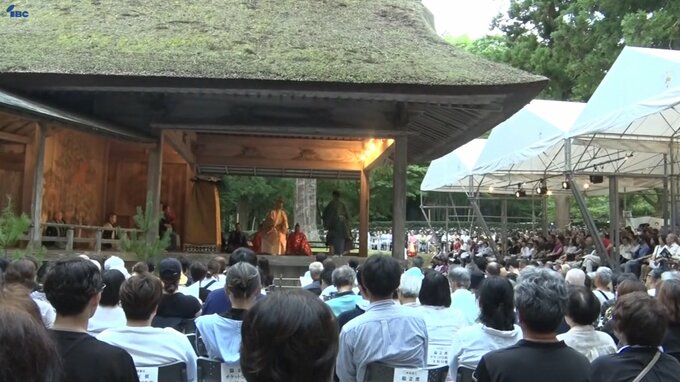 平泉町の中尊寺で14日、お盆恒例の「薪能」が行われ、観客がかがり火に照られた幻想的な舞台を堪能しました。