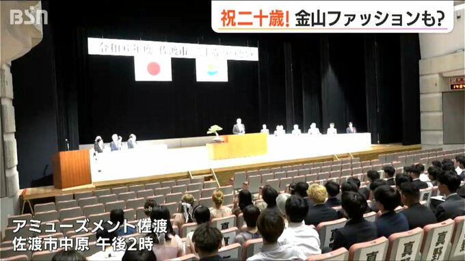新潟県佐渡市で15日、「二十歳のつどい」が開かれましたが、今年は『「佐渡島の金山」の世界遺産登録』を意識して金色に染まった二十歳の姿も…