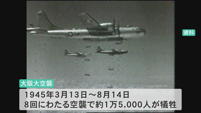 石垣さんから語られたのは、1945年3月13日から終戦前日の8月14日まで8回にわたり大阪を襲いおよそ1万5000人もの人が犠牲となった大阪大空襲です。石垣さんは7歳の時、祖父母と3人で暮らしていた大阪市港区市岡で空襲にあいました。
