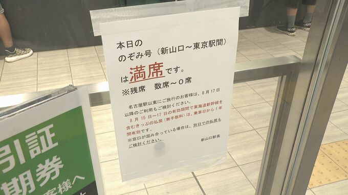「のぞみ号」は、お盆期間の座席は全席指定席でしたが今回の計画運休でさらに予約が増え、きょうの新山口・東京間は昼過ぎには、満席となりました。